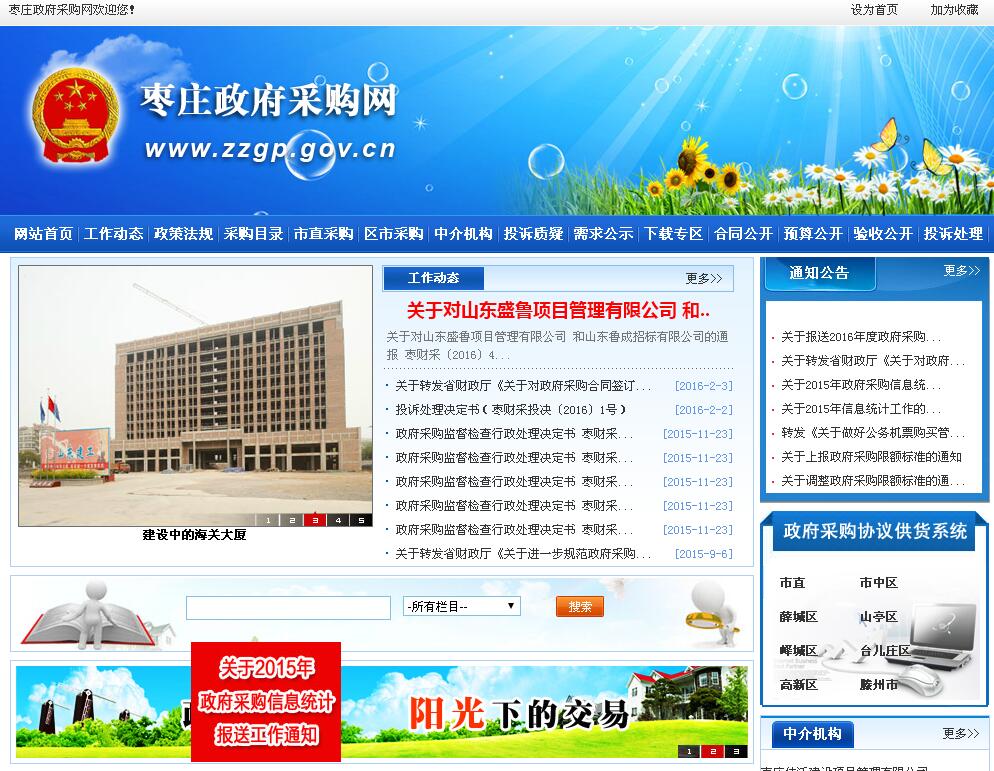 棗莊市政府采購管理辦公室主辦的網(wǎng)站